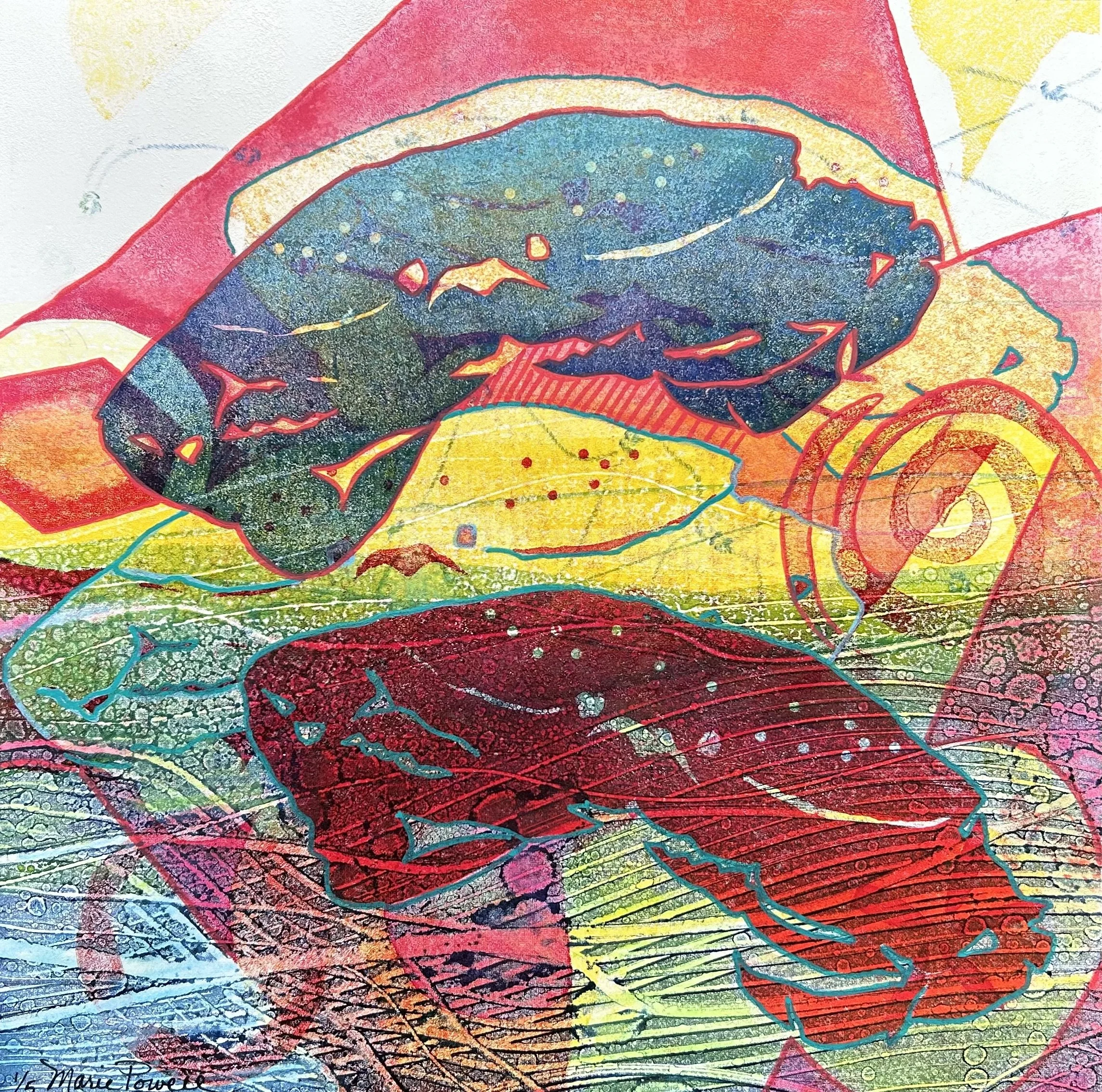 Medium: Original Monoprint, Oil-based Inks on 100% Rag paper on Wood panel